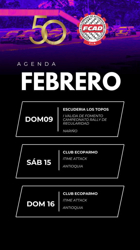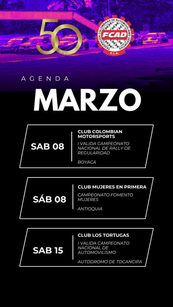 Calendario de las carreras en Colombia respaldada por La Federación Colombiana de Automovilismo 2024.