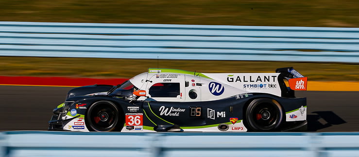 El auto No. 52 de PR1 Mathiasen Motorsports de Scott Huffaker, Mikkel Jensen y Ben Keating se quedó con la victoria engtre los LMP2.