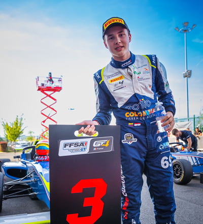El joven piloto capitalino de 15 años patrocinado por Totto y apoyado por Mindeporte mostró un notorio progreso en pista en desarrollo de la tercera ronda del F4 Francés que se disputó en el marco del prestigioso GT World Challenge, en donde se mostró fuerte desde la etapa de clasificaciones para cerrar un positivo fin de semana con un podio, puesto tres conseguido en la segunda carrera, y doble Top 5, posiciones 4 y 5 en las carreras 3 y 1, respectivamente, una actuación que le valió los elogios de los organizadores y conocedores del serial.